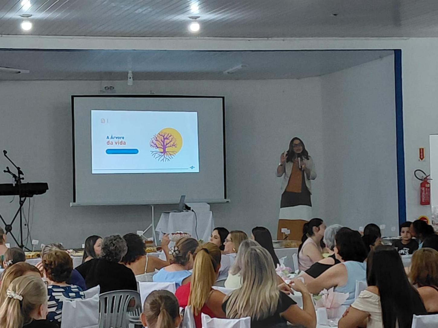 Logo após, as participantes acompanharam uma palestra especial ministrada por Simone Meire, do Sebrae, que falou sobre a importância do Dia Internacional da Mulher, destacando o papel das mulheres na sociedade, no empreendedorismo e na construção de uma comunidade mais justa e participativa.